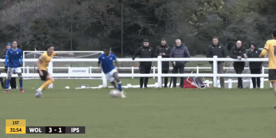 第40分钟,徐彬长传球策动攻势,但被伊普斯维奇后卫利用速度超车,率先将球抢断。
